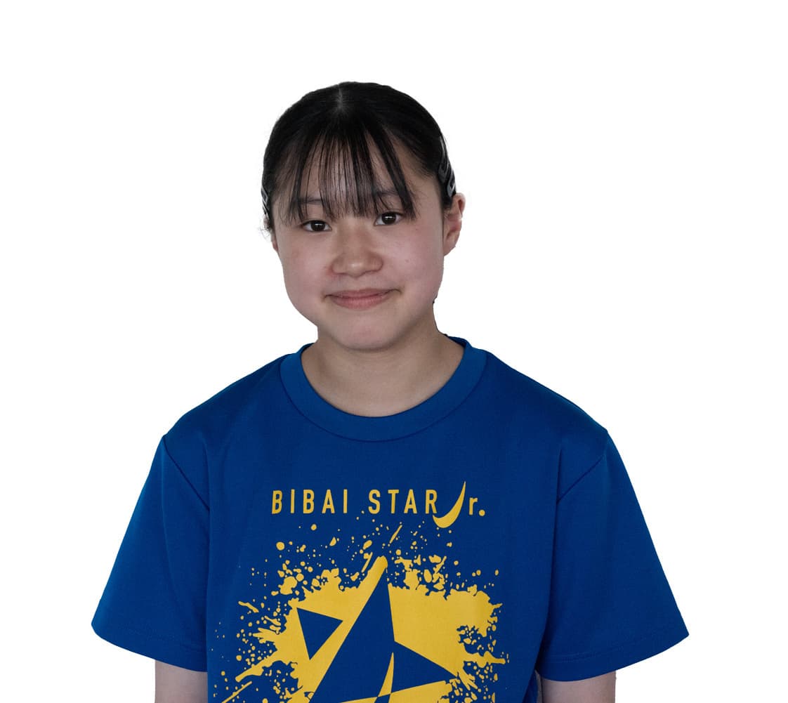 | H31全日本選手権バンビ北海道大会第3位(全国出場) R1道新杯小学3年生以下の部 ベスト8 R3全日本選手権大会(ホカバの部)北海道選考会 カブ優勝(全国出場) R3道新杯北海道小学生卓球大会 4年生女子 優勝 R3東日本アジアホープス日本代表選考会出場 R4全日本選手権ホープス北海道大会第6位(全国出場) R4全国ホープス北海道大会 女子団体戦準優勝(全国出場) R4全日本カデット北海道大会女子13歳以下の部 準優勝(全国出場) R4全日本カデット北海道大会女子W 4位 R4道新杯北海道小学生卓球大会 5年生女子 優勝 R4東日本アジアホープス日本代表選考会出場 R4全国ホープス選抜卓球大会 ベスト8(北海道代表) R5全日本選手権ホープス北海道大会 優勝(全国出場) R5全国ホープス北海道大会 女子団体戦優勝(全国出場) R5全日本カデット北海道大会 女子W準優勝(全国出場) R5全日本カデット北海道大会 女子13歳以下の部 第6位(全国出場) R5全日本カデット 女子W ベスト32 R5道新杯北海道小学生卓球大会 6年生女子 優勝 R5全国ホープス選抜卓球大会 出場(北海道代表) R6中体連北海道大会 女子Sベスト8(全国出場) R6全日本カデット北海道大会 女子W 5位(全国出場) R6全日本カデット北海道大会 女子13歳以下の部 優勝(全国出場) R6パスウェイ事業北海道東北ブロック(U-15女子)出場 R6全日本カデット 女子W ベスト16 R7全日本カデット北海道大会 女子W 3位(全国出場) R7全日本カデット北海道大会 女子14歳以下の部 優勝(全国出場)